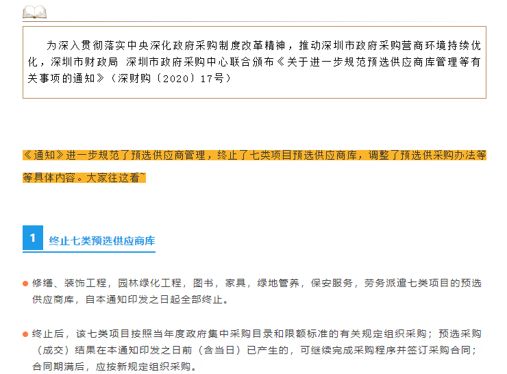 深圳政采:這七類預選供應(yīng)商庫已被終止!